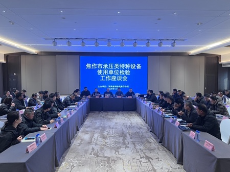 12月10日,焦作分公司组织召开全市承压类特种设备使用单位检验工作座谈会,聚焦事故案例通报、隐患判定准则解读、检验情况通报等核心内容展开研讨。焦作市市场监督管理局特种设备监督管理科科长杜师新、豫检集团锅检院有限公司总经理助理李国政出席会议并讲话,焦作分公司经理毛晓刚主持会议,支部书记原星汇总分析今年检验工作突出问题,副经理宋振江及辖区 64 家企业代表参会。