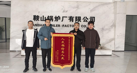 在检验过程中,洛阳分公司团队展现出精湛的专业技术和严谨负责的工作态度,获得了受检单位的高度认可。为表达诚挚的谢意,鞍山锅炉厂向洛阳分公司赠送了一面锦旗。