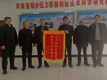 12月31日,叶县市场监督管理局郑红海局长一行四人来到平顶山分公司赠送一面印有“鼎力相助排隐患 技术支持保安全”的锦旗,以此感谢平顶山分公司在协助叶县市场监督管理局开展特种设备安全专项排查行动中的突出贡献。