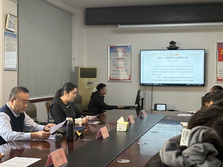 宣讲会开始前,分公司经理刘遂民对领导们到漯河分公司党支部进行党的二十届四中全会精神宣讲活动表示欢迎与感谢;随后介绍了分公司人员结构与组成。会议室里座无虚席,分公司全体人员齐聚一堂,满怀期待地聆听领导的宣讲。