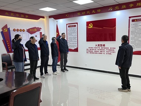 活动现场气氛庄重而热烈,全体人员肃立注目,在党支部书记原星的领誓下,4名新一届支委会成员整齐列队,面向鲜红的党旗,高举右拳、神情肃穆,庄严宣誓。铿锵有力的誓言字字千钧,既是支委会成员对党的郑重承诺,也彰显了新一届支委班子履职尽责、担当作为的坚定决心。