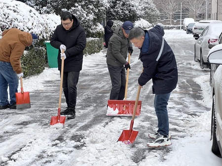 1月19日焦作地区遭遇极端降温暴雪天气,漫天飞雪为大地披上银装,也给分公司办公区道路、台阶及停车区域带来积雪与结冰,严重影响干部职工出行安全和日常工作秩序。为快速消除安全隐患、保障通行畅通,1月20日清晨焦作分公司干部职工抵达单位后,迅速响应、自发行动,一场“扫雪除冰保畅通”的志愿活动火热开展。