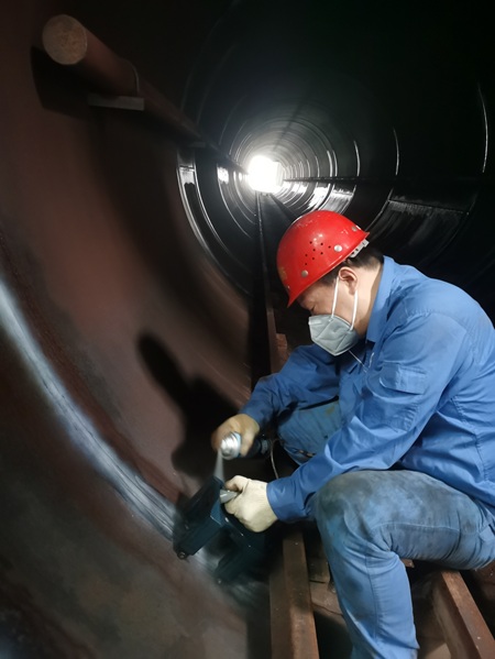 次日清晨,检验人员便携带齐全的检测仪器和防护装备,准时抵达洛阳龙新建材有限公司的检验现场。检验过程中,检验人员克服地坑内空间狭小、通风不良、湿滑难行等困难,严格按照技术规范的要求,对每台设备的结构完整性、材料性能、焊缝质量、安全附件有效性以及运行记录等进行了全方位、多层次的细致检查。同时,针对企业在使用过程中提出的疑问和技术困惑,检验团队积极提供专业指导和建议,认真协助解决实际问题。经过长达十几个小时连续不断的高强度作业,终于顺利完成了检验,为企业后续的复产工作提供了坚实的技术支撑和安全保障。