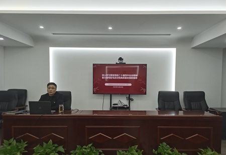 为全面深入学习领会党的二十届四中全会精神,认真落实院公司党委《关于做好党的二十届四中全会精神学习宣传的通知》要求,根据院公司党委工作安排,12月24日,驻马店分公司党支部书记、经理吕琼以“深入学习贯彻党的二十届四中全会精神 奋力谱写驻马店分公司高质量发展新篇章”为主题讲授专题党课,分公司全体党员参加。